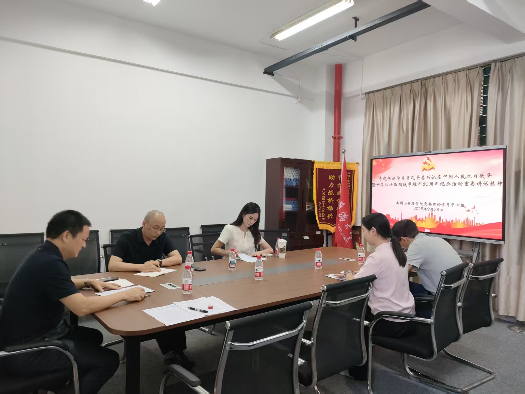 2025年9月28日下午,新传学院党委理论学习中心组在会议室召开专题学习会,学习研讨《习近平谈治国理政》第五卷,传达学习习近平总书记在中国人民抗日战争暨世界反法西斯战争胜利80周年纪念活动重要讲话精神。